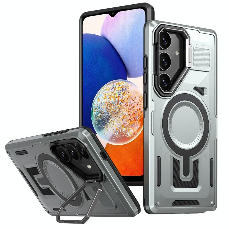 Θήκη κινητού τηλεφώνου Samsung Galaxy A14 Shield Hollow Frame Holder MagSafe (Γκρι)