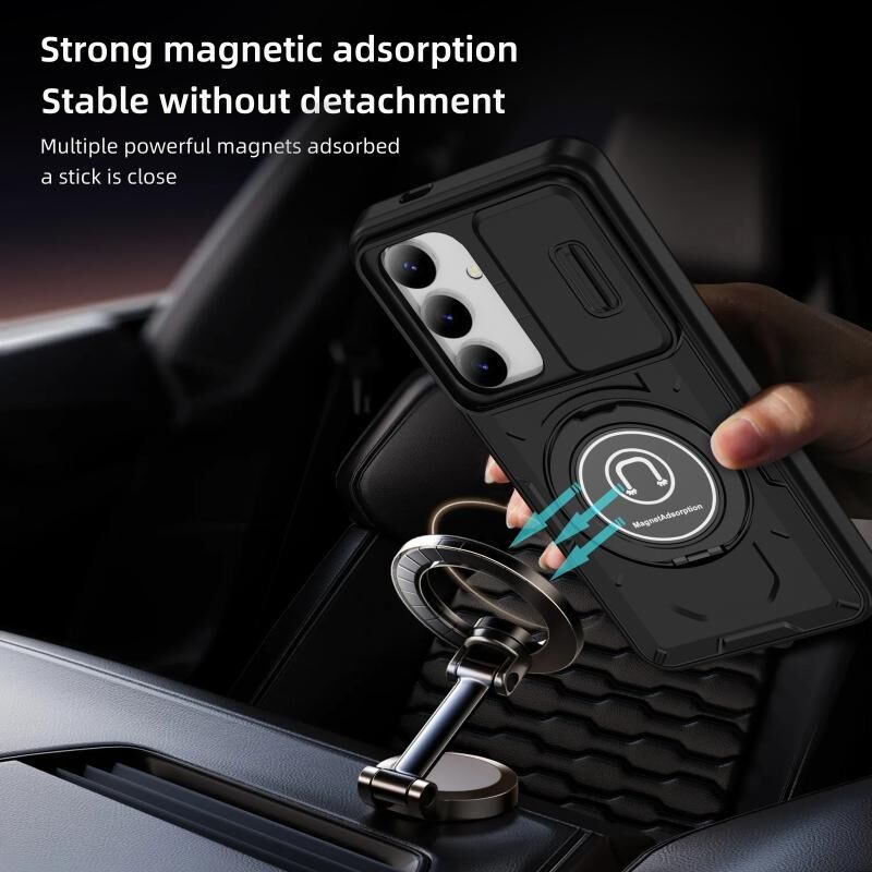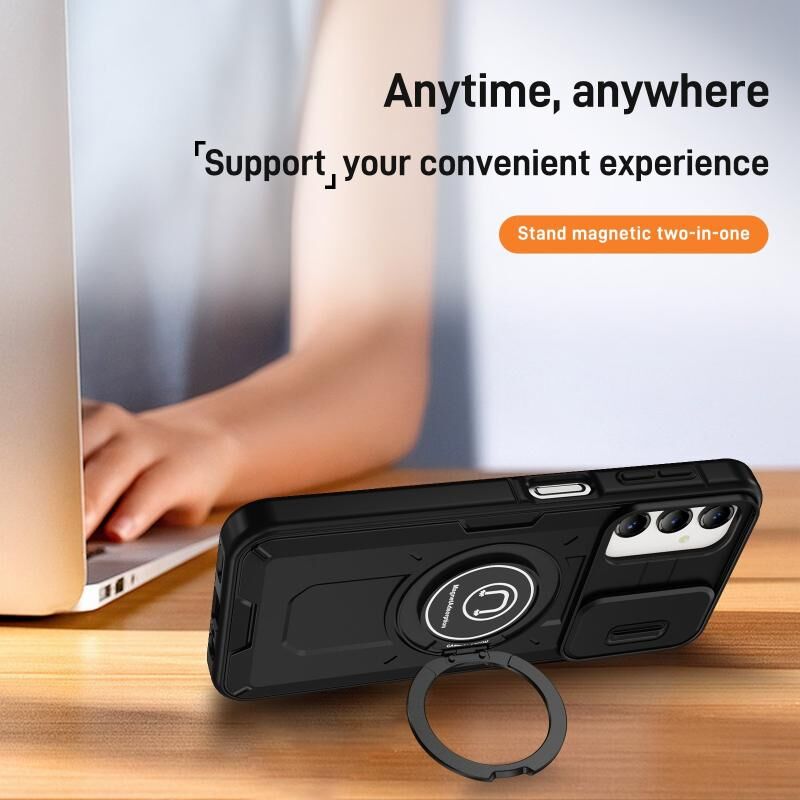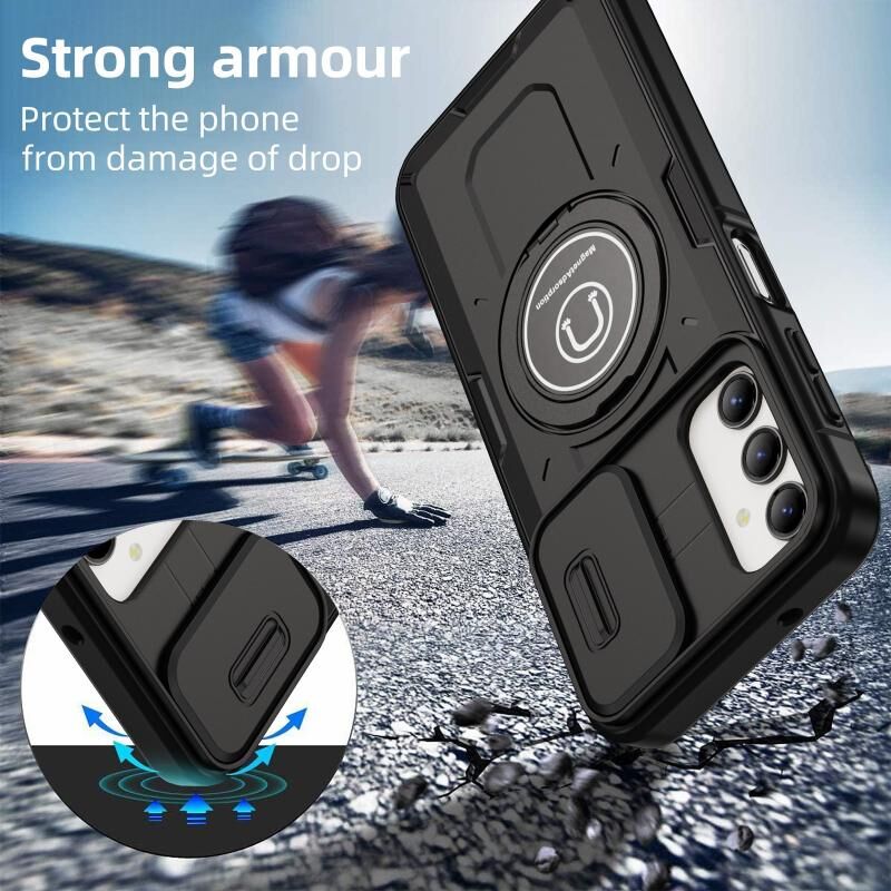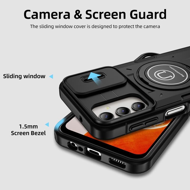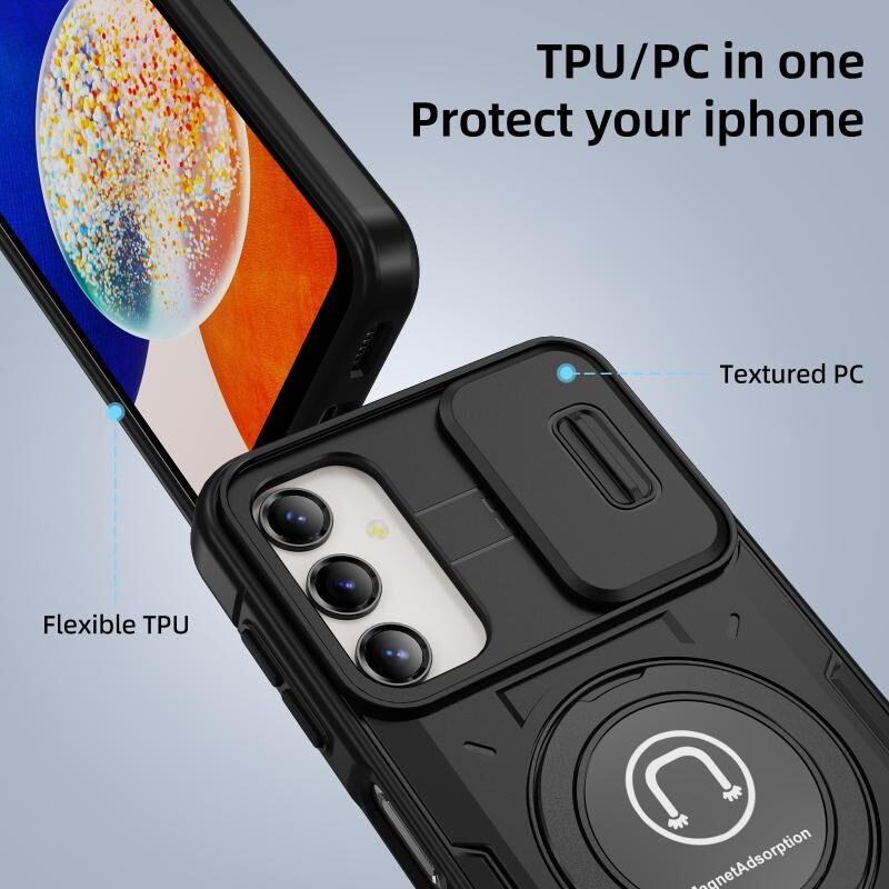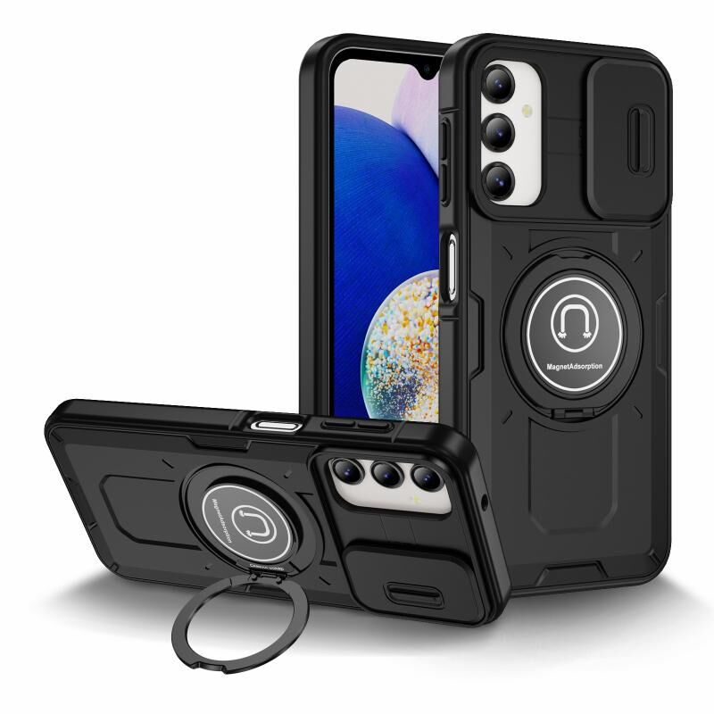 Για Samsung Galaxy A14 συρόμενη Camshield TPU υβριδικό PC μαγνητική θήκη τηλέφωνο κάτοχος (μαύρο)
