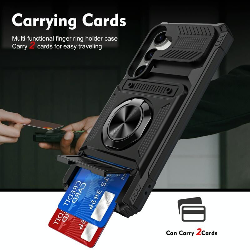 Θήκη κινητού τηλεφώνου Samsung Galaxy A14 TPU+PC ανθεκτική σε κρούσεις με κάρτες και μεταλλική βάση στήριξης (Κόκκινο)
