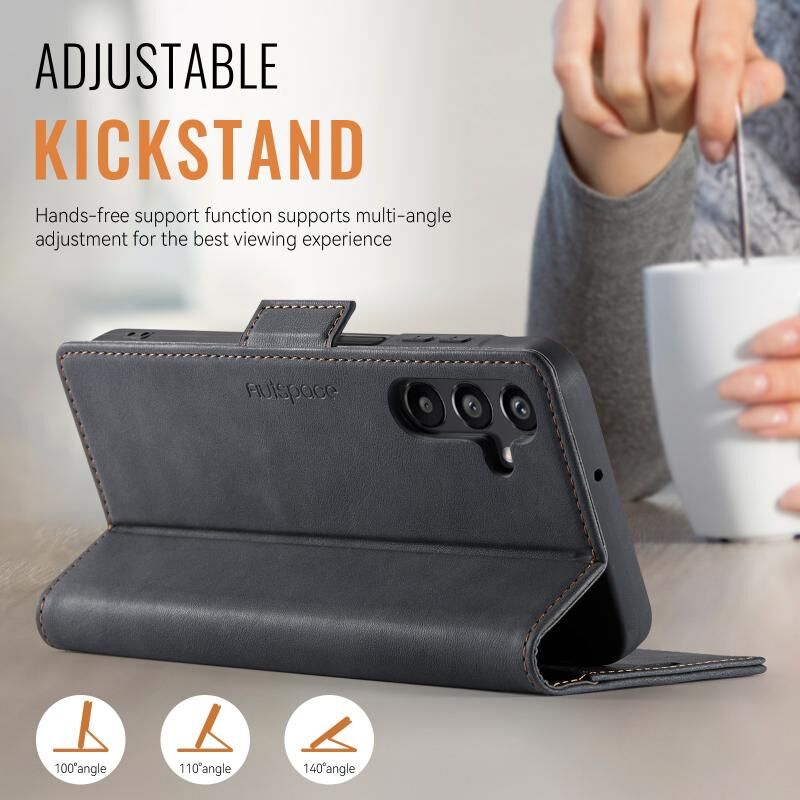 Θήκη τηλεφώνου δερμάτινη με μαγνητική σύνδεση MagSafe και προστασία RFID για Samsung Galaxy A15 4G / 5G / AutSpace A11 με πλευρική αγκράφα (Μαύρο) (AutSpace)