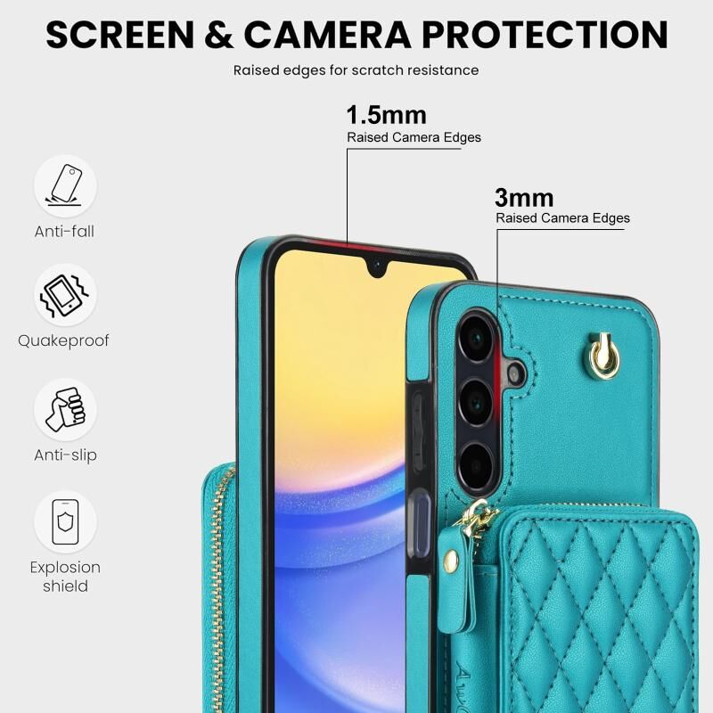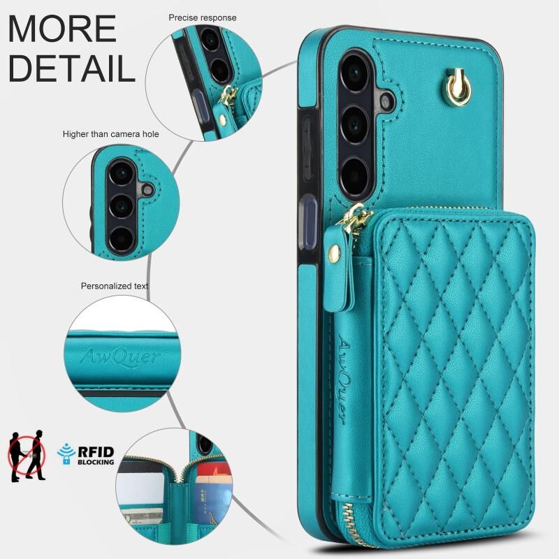 Θήκη κινητού τηλεφώνου AwQuer Crossbody με φερμουάρ και δερμάτινη πλάτη σε ρόμβους για Samsung Galaxy A15 4G / 5G (Κόκκινο) (Awquer)
