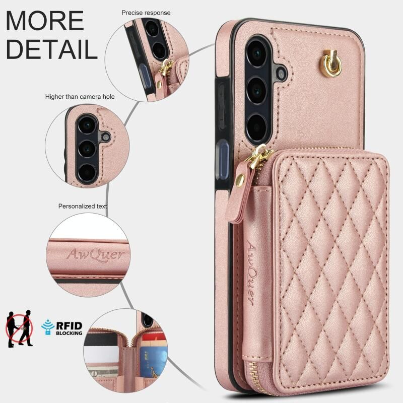 Θήκη κινητού τηλεφώνου AwQuer Crossbody με φερμουάρ και δερμάτινη πλάτη σε ρόμβους για Samsung Galaxy A15 4G / 5G (Κόκκινο) (Awquer)