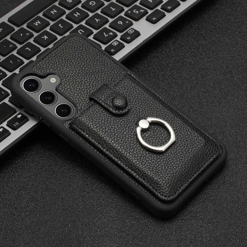 Για Samsung Galaxy A15 4G / 5G Litchi Υφή Σχεδίαση κάρτα τσάντα δαχτυλίδι κάτοχος υπόθεση τηλεφώνου (Μαύρο)