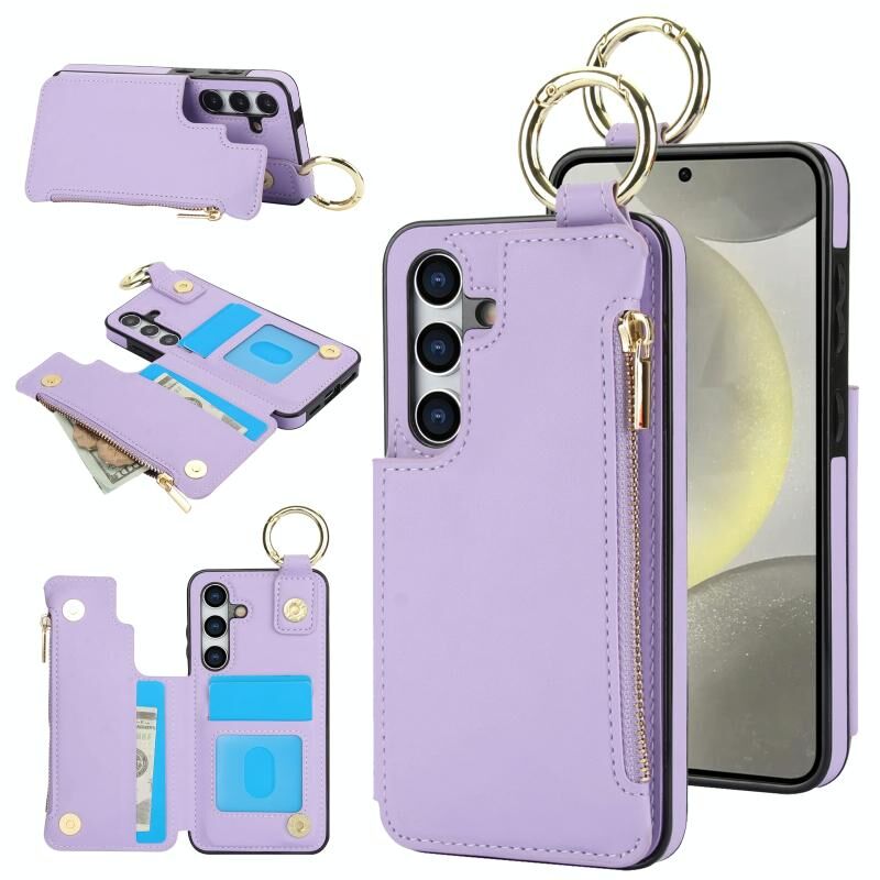 Για Samsung Galaxy A15 4G / 5G RFlD Anti-theft Διπλό πόρπη δαχτυλίδι φερμουάρ τηλέφωνο υπόθεση κάρτα (μωβ)