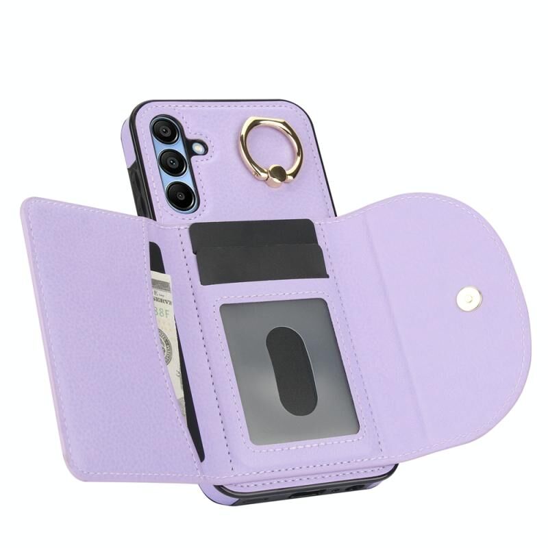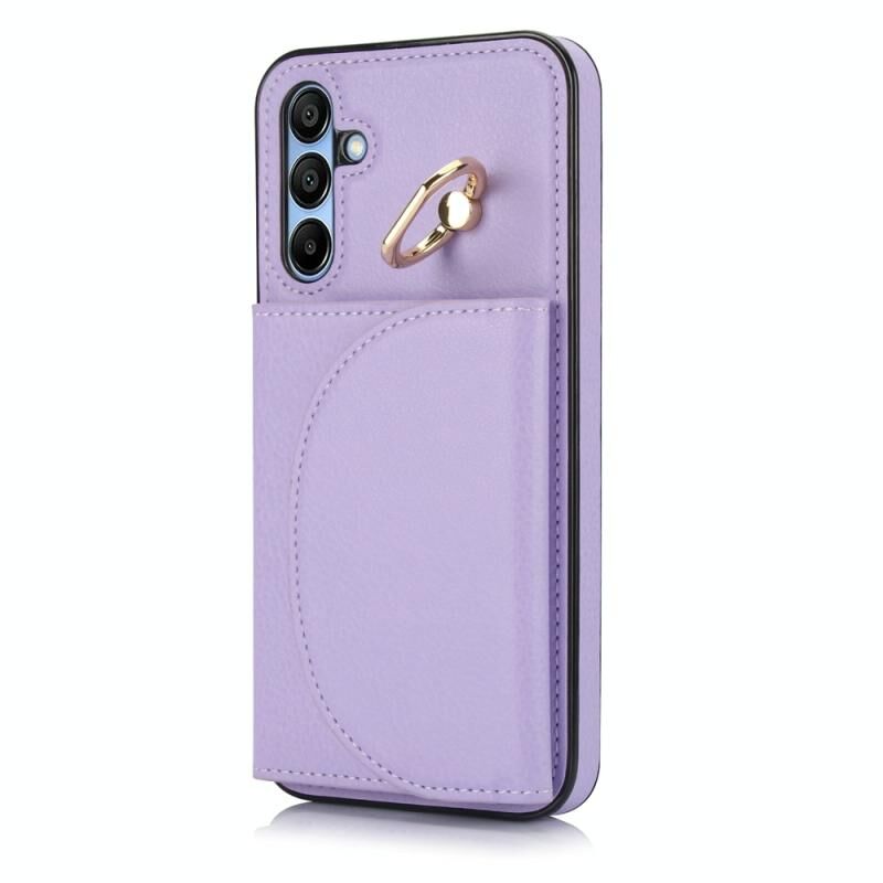 Για Samsung Galaxy A15 4G / 5G YM007 Ring κάτοχος κάρτα τσάντα τσάντα δέρμα αίσθηση υπόθεση τηλεφώνου (Μωβ)