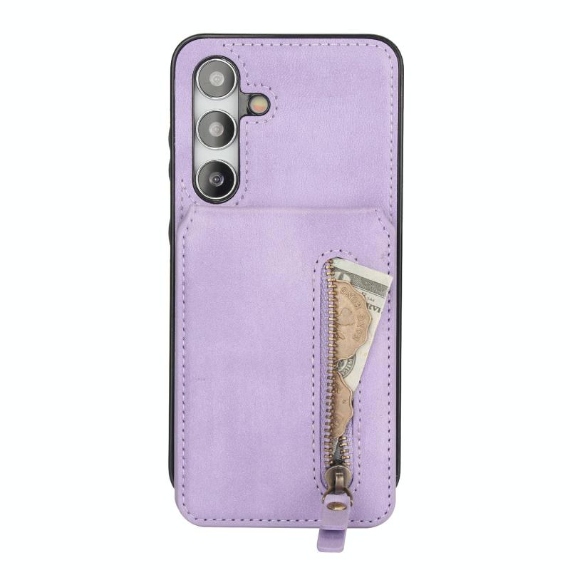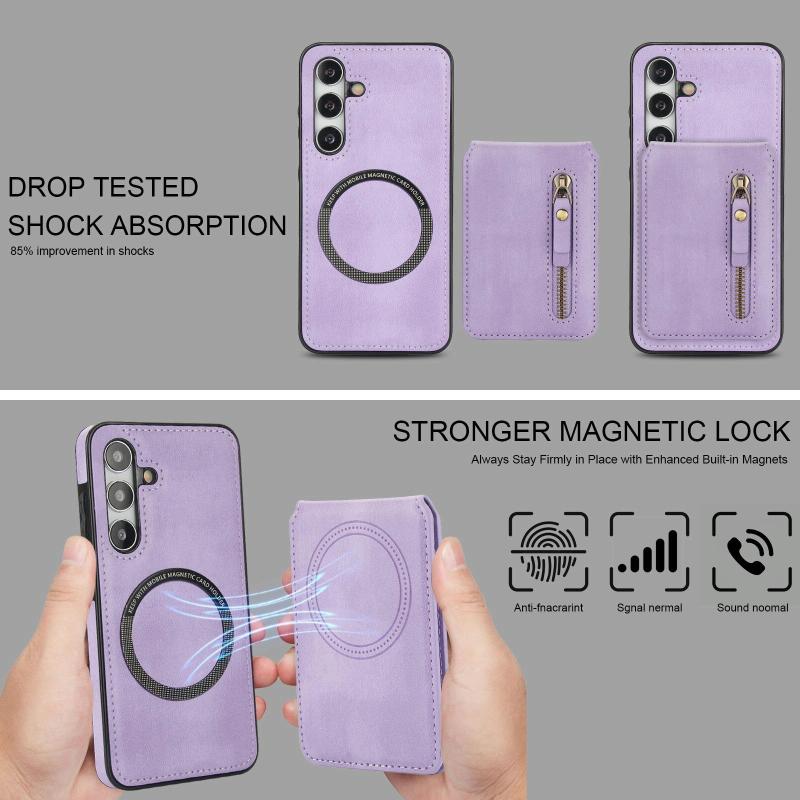 For Samsung Galaxy A15 4G / 5G Zipper Wallet Split MagSafe Leather Back Phone Case(Purple)