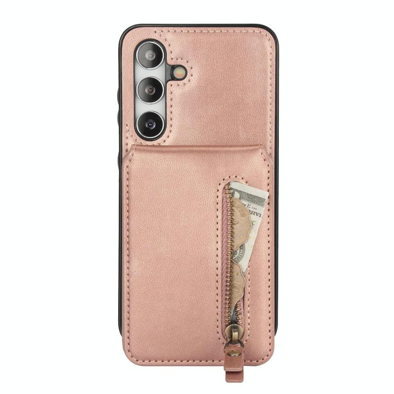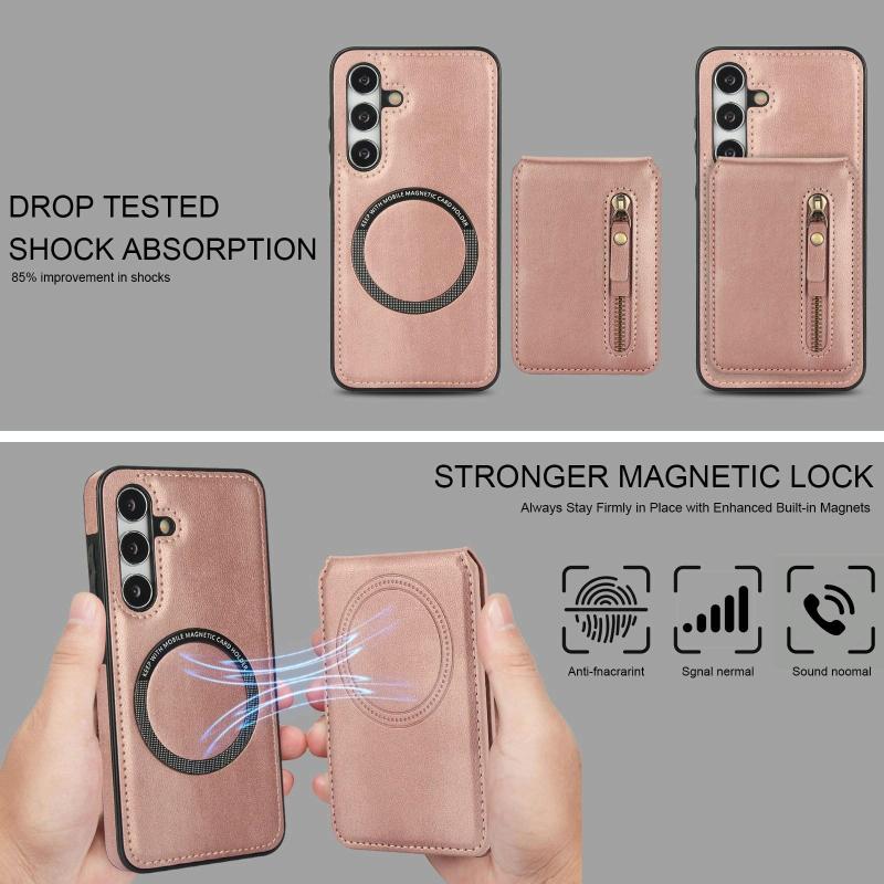 For Samsung Galaxy A15 4G / 5G Zipper Wallet Split MagSafe Leather Back Phone Case(Rose Gold)
