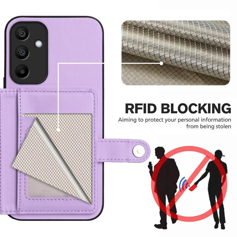 For Samsung Galaxy A15 4G Button Card Bag RFID Anti-theft Phone Case(Purple)