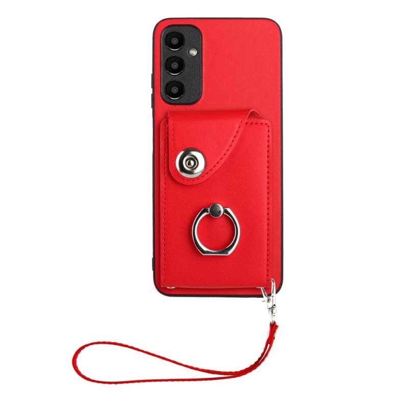 Για Samsung Galaxy A15 4G Παγκόσμια Οργανική Κάρτα τσάντα δαχτυλίδι κάτοχος PU υπόθεση τηλεφώνου με κορδόνι (κόκκινο)