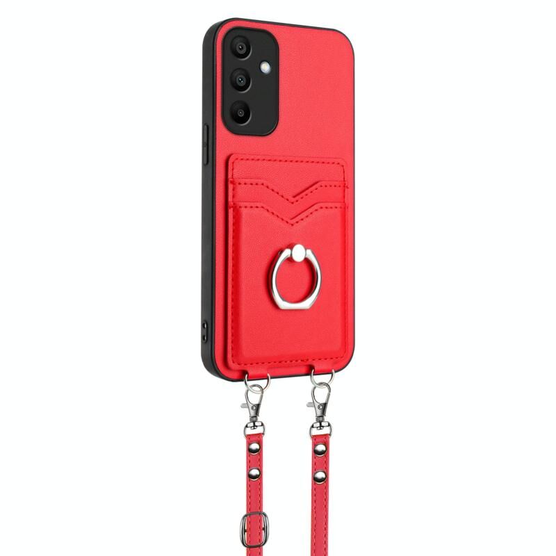 Για Samsung Galaxy A15 4G Global R20 Crossbody σχοινί δαχτυλίδι κάτοχος κάρτας υπόθεση τηλεφώνου (κόκκινο)
