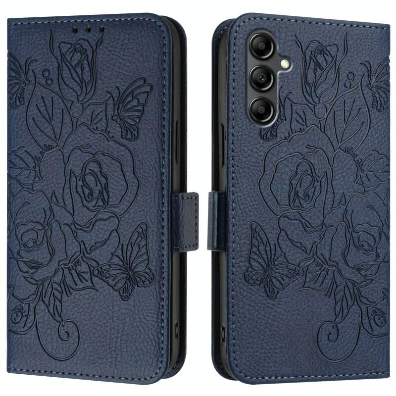 Για Samsung Galaxy A15 5G / 4G ανάγλυφο Rose RFID Anti-theft Δερμάτινη θήκη τηλεφώνου (σκούρο μπλε)