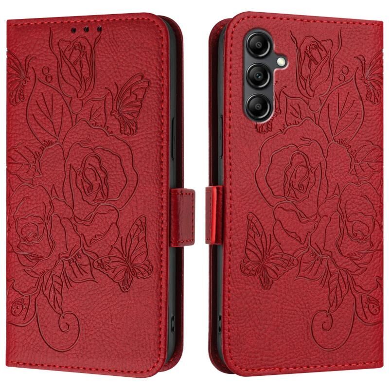 Για Samsung Galaxy A15 5G / 4G ανάγλυφο Rose RFID Anti-theft Δερμάτινη θήκη τηλεφώνου (κόκκινο)