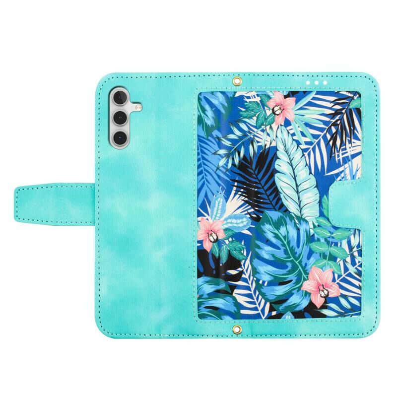 Θήκη τηλεφώνου Samsung Galaxy A15 5G / 4G με λουλουδάτο σχέδιο από δέρμα με κορδόνι (Ανοιχτό Μπλε)