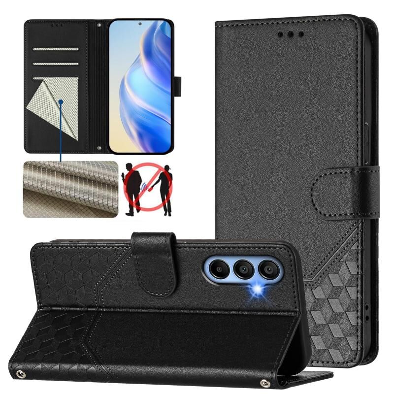 Για Samsung Galaxy A15 5G / 4G Honeycomb ανάγλυφη RFID δερμάτινη θήκη τηλεφώνου (Μαύρο)