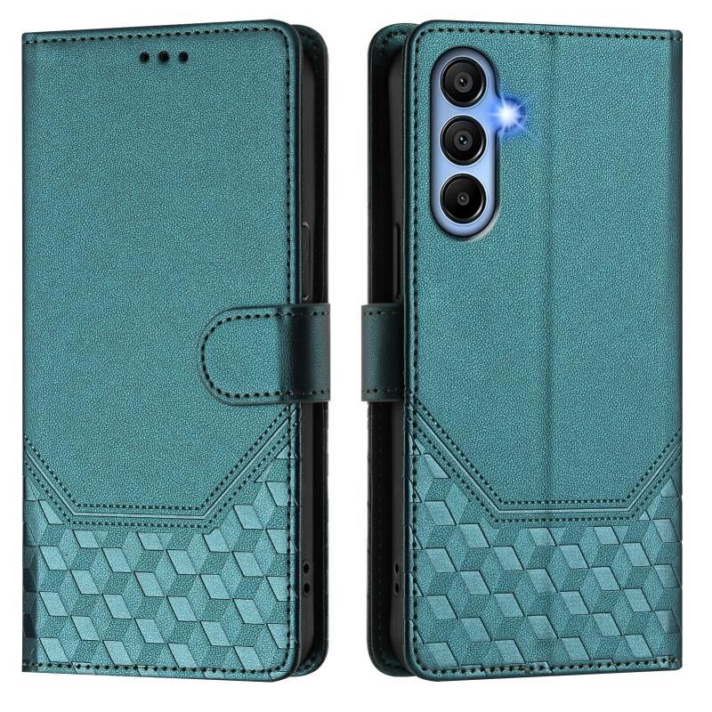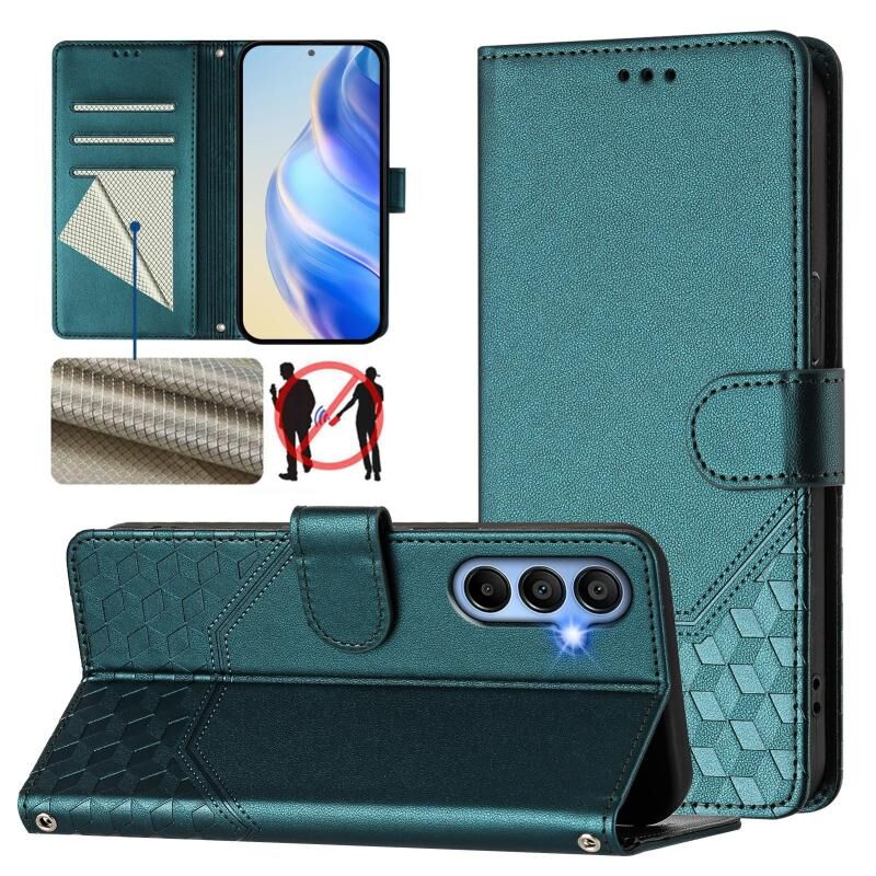Για Samsung Galaxy A15 5G / 4G Honeycomb ανάγλυφο RFID δερμάτινη θήκη τηλεφώνου (Πράσινο παγώνι)