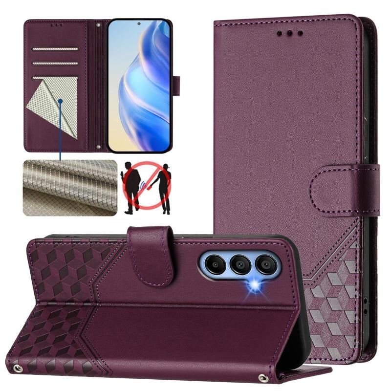 Για Samsung Galaxy A15 5G / 4G Honeycomb ανάγλυφη RFID δερμάτινη θήκη τηλεφώνου (Violet)