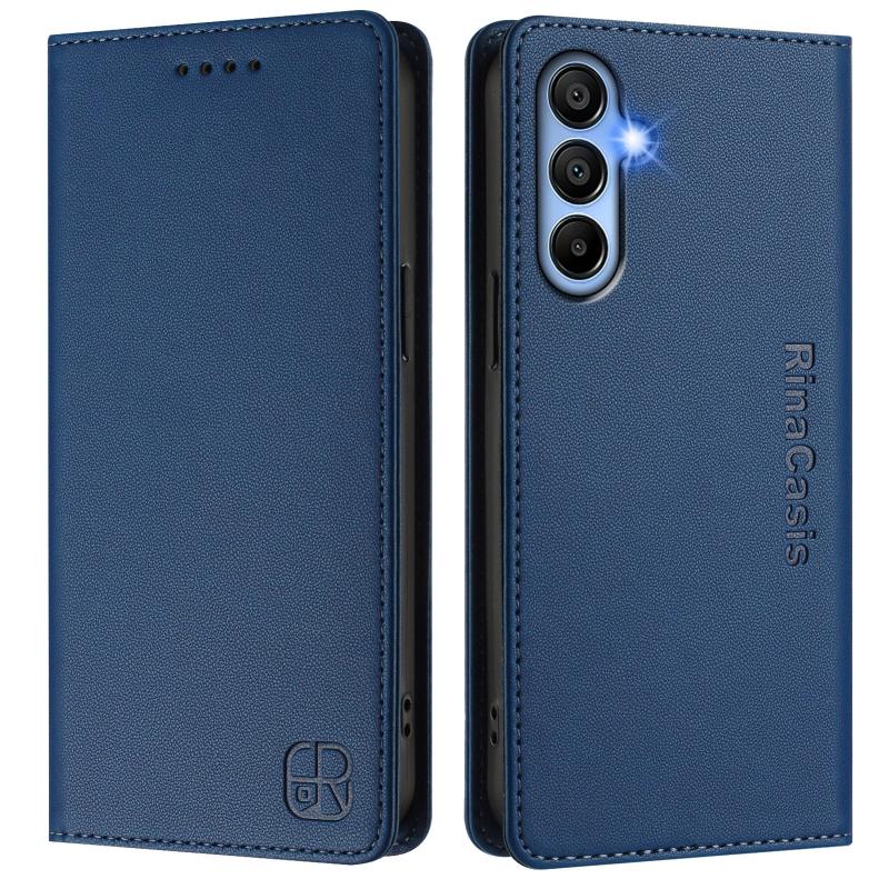 For Samsung Galaxy A15 5G / 4G RC01 Dual-Folded Magnetic Suction RFID Leather Phone Case(Dark Blue)