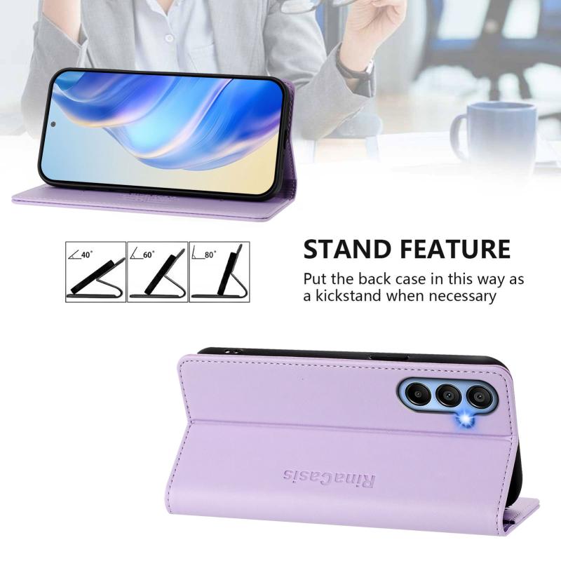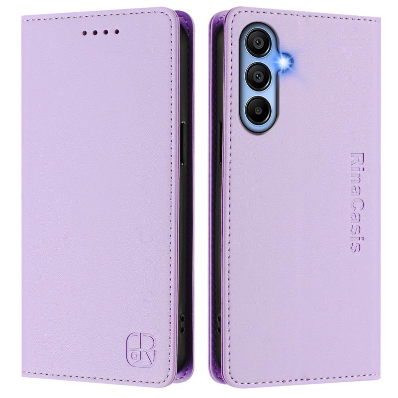 For Samsung Galaxy A15 5G / 4G RC01 Dual-Folded Magnetic Suction RFID Leather Phone Case(Light Purple)