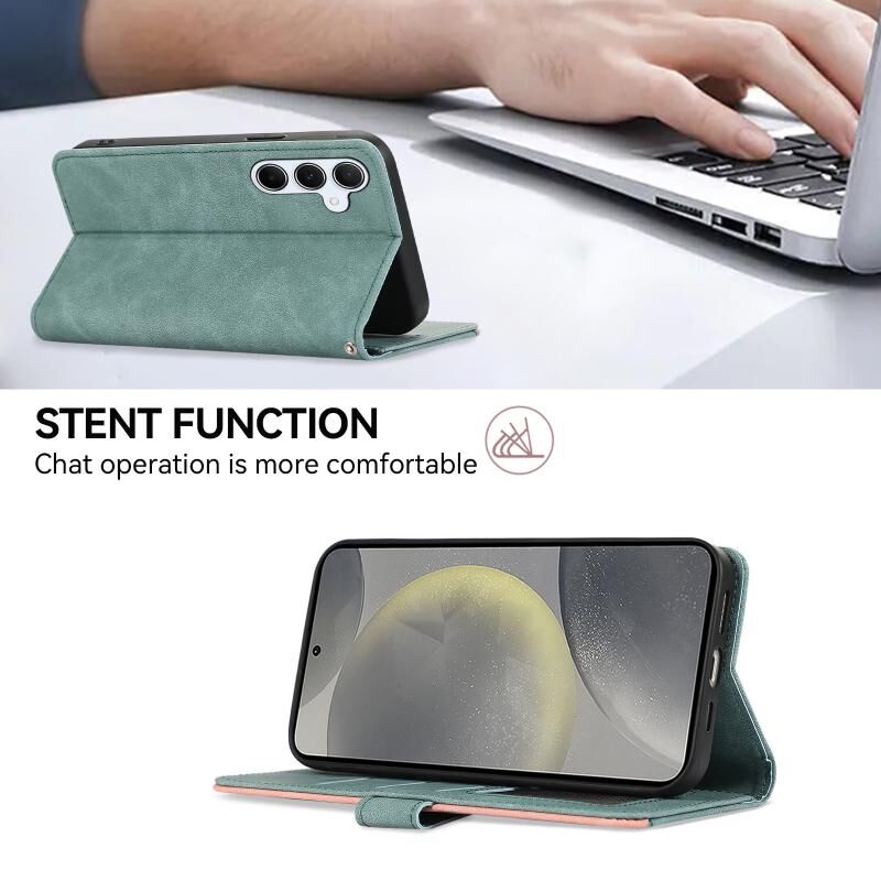 Θήκη τηλεφώνου Samsung Galaxy A15 5G ABEEL με μαγνητικό κλείσιμο, δερμάτινη, με χρωματικούς συνδυασμούς και προστασία RFID (Ροζ-Κυανό)
