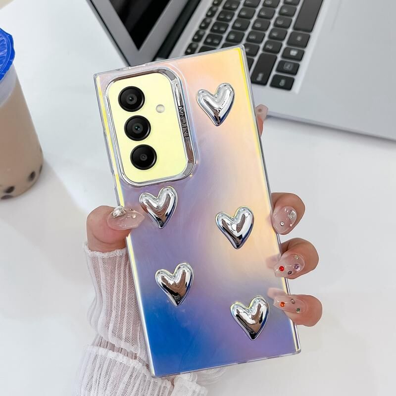 Θήκη τηλεφώνου TPU με ηλεκτρολυτική επίστρωση, υφή λέιζερ 5 καρδιών για Samsung Galaxy A15 5G (Κυματισμοί νερού)