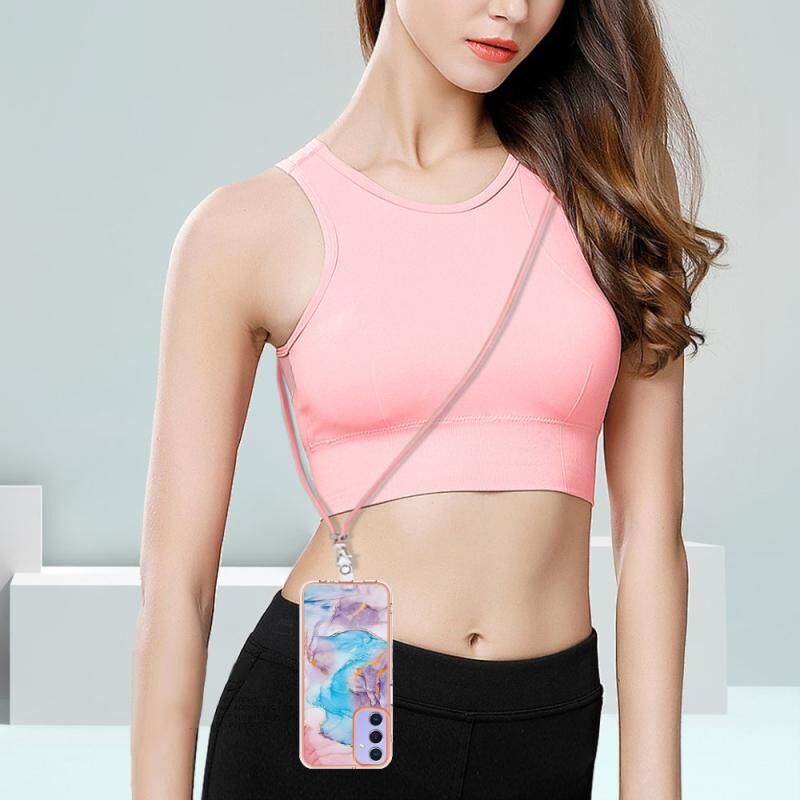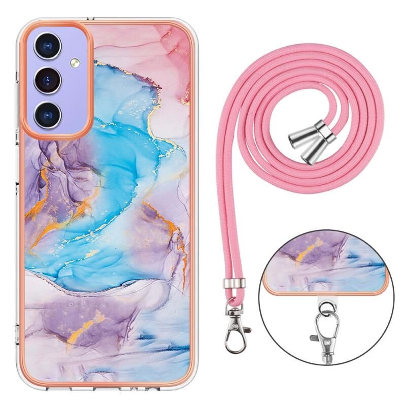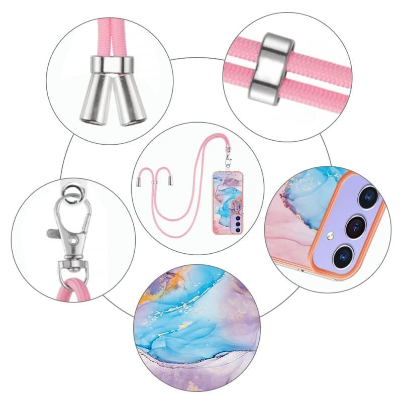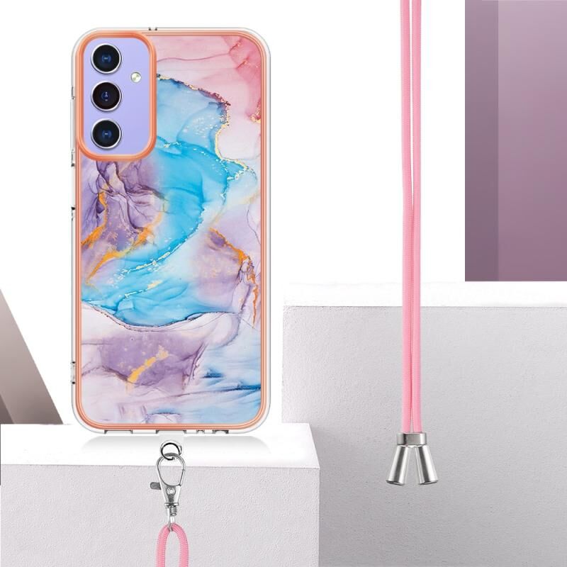 For Samsung Galaxy A15 5G Electroplating IMD TPU Phone Case with Lanyard(Blue Marble)