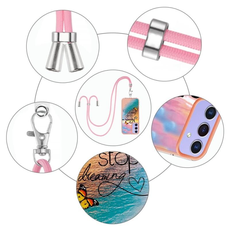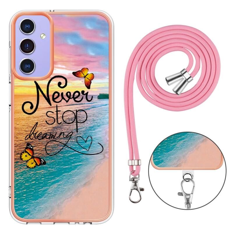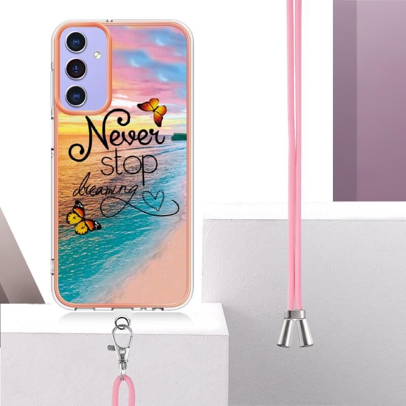 For Samsung Galaxy A15 5G Electroplating IMD TPU Phone Case with Lanyard(Dream Butterfly)