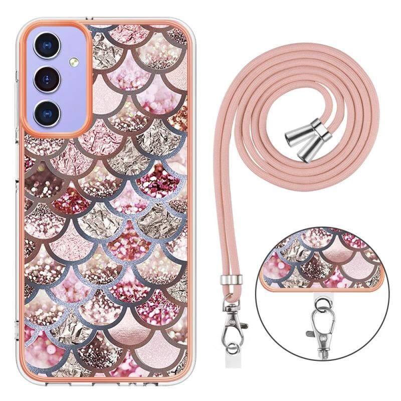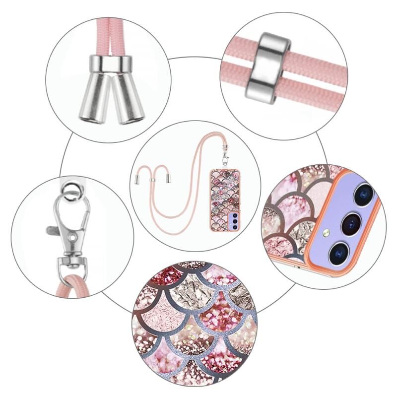 Θήκη κινητού τηλεφώνου Samsung Galaxy A15 5G με επιμετάλλωση IMD TPU και κορδόνι (Ροζ Λέπια)