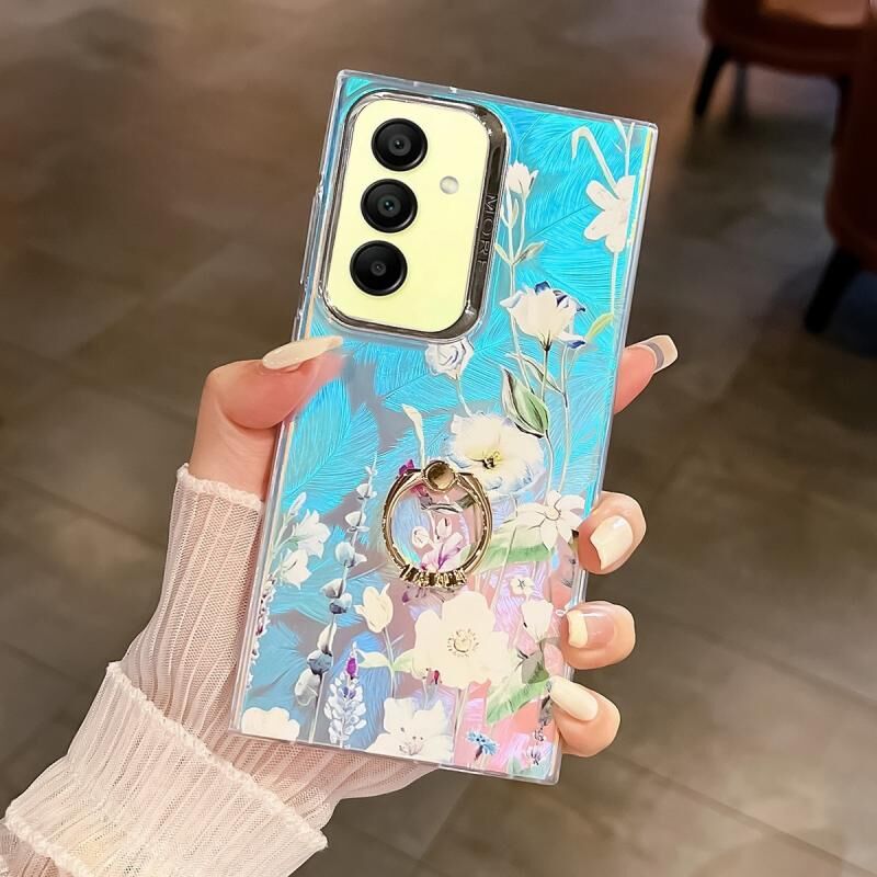 Θήκη τηλεφώνου TPU με δακτύλιο στήριξης και λουλουδάτο σχέδιο με ηλεκτρολυτική επίστρωση laser για Samsung Galaxy A15 5G (Λευκό Λουλούδι AH10)