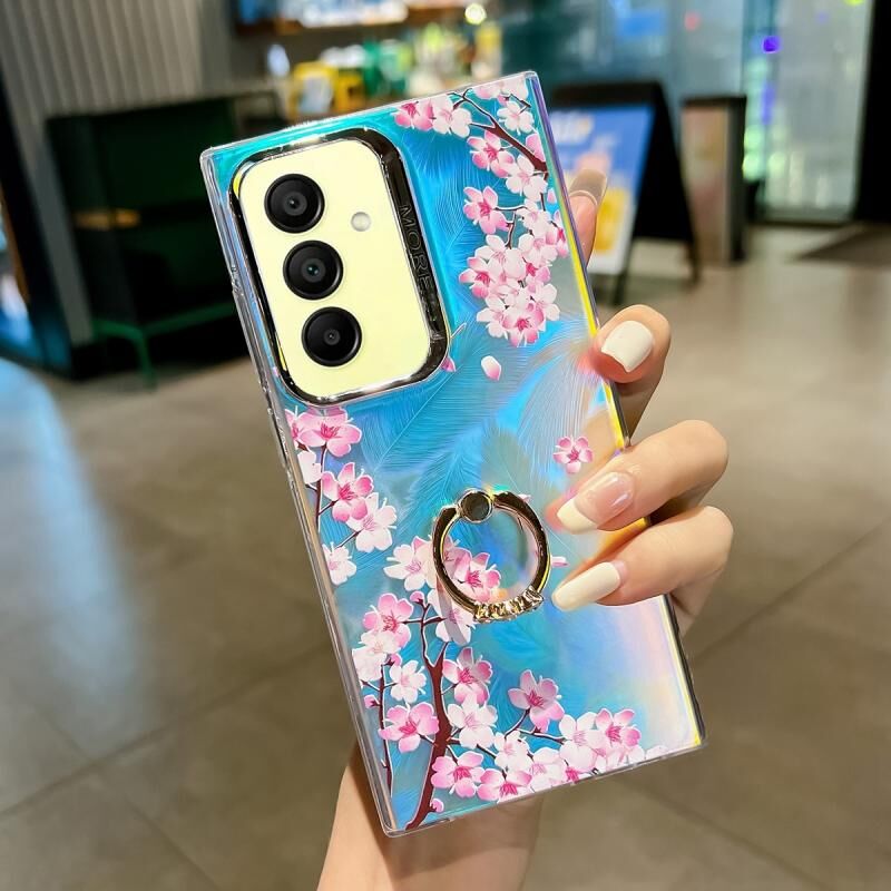 Θήκη τηλεφώνου TPU με δακτύλιο στήριξης και σχέδιο λουλουδιών με λέιζερ και ηλεκτρολυτική επικάλυψη για Samsung Galaxy A15 5G (Ανθισμένη ροδακινιά AH4)