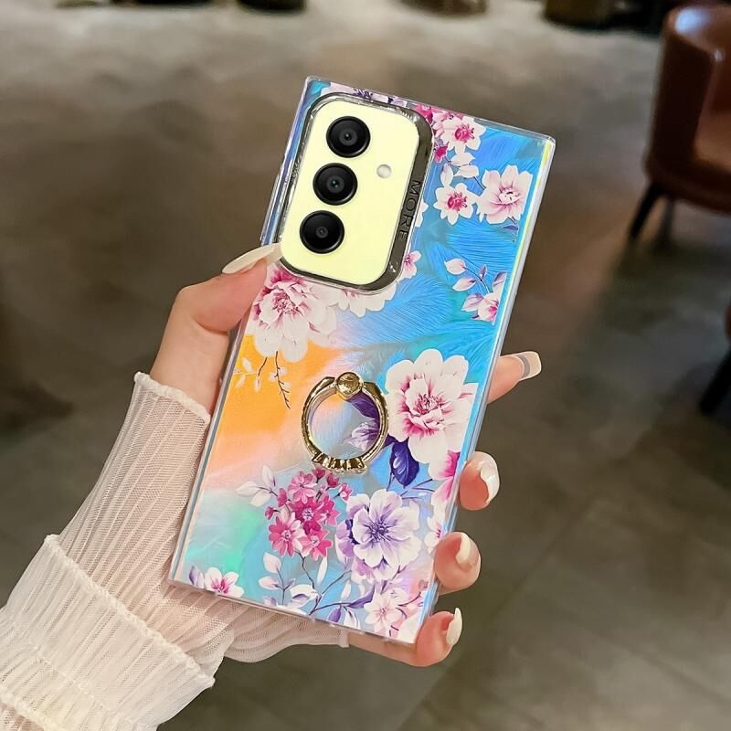 Θήκη τηλεφώνου TPU με δακτύλιο στήριξης και σχέδιο λουλουδιού με λέιζερ και ηλεκτρολυτική επικάλυψη για Samsung Galaxy A15 5G (Παιώνια AH11)