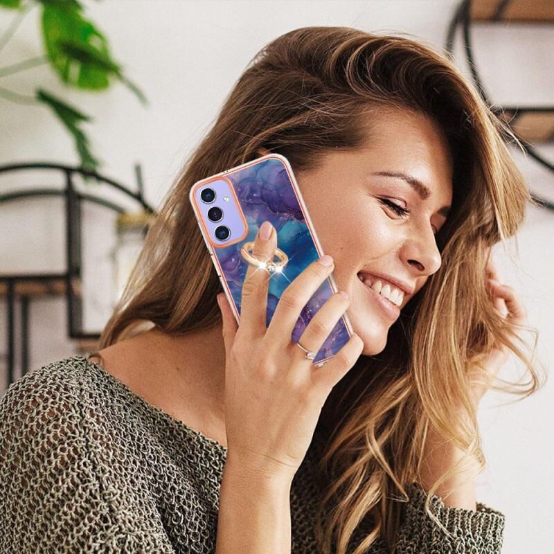 Θήκη τηλεφώνου για Samsung Galaxy A15 5G με ηλεκτρολυτική μαρμάρινη επένδυση IMD διπλής όψης με δαχτυλίδι (Μωβ 016)