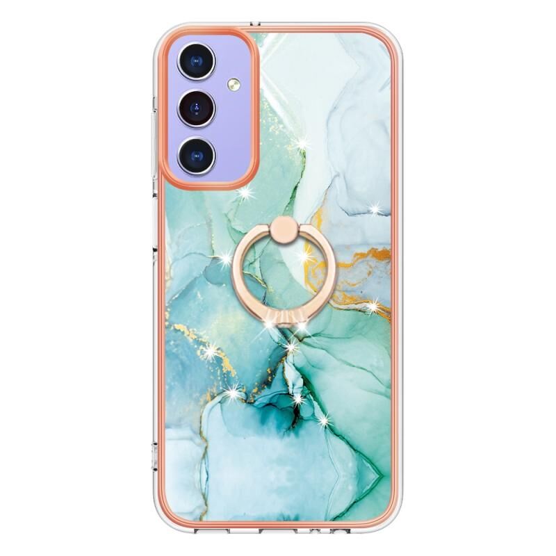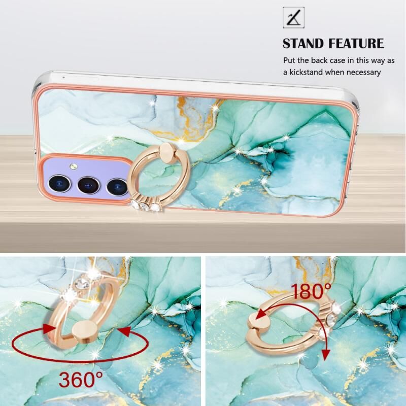 Θήκη κινητού τηλεφώνου Samsung Galaxy A15 5G με Ηλεκτρολυτική επικάλυψη, σχέδιο Μάρμαρου IMD, από TPU με Δακτύλιο Στήριξης (Χρυσό Ρόδι 005)