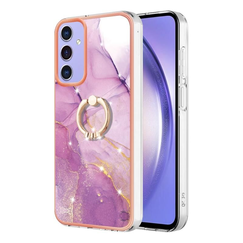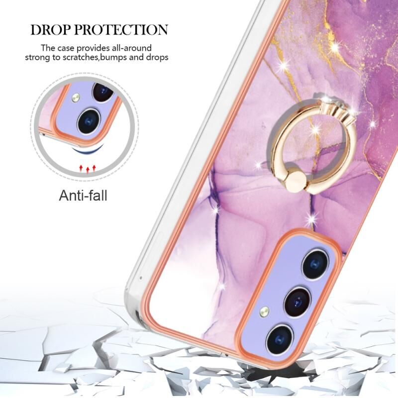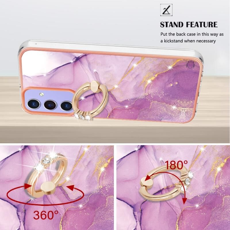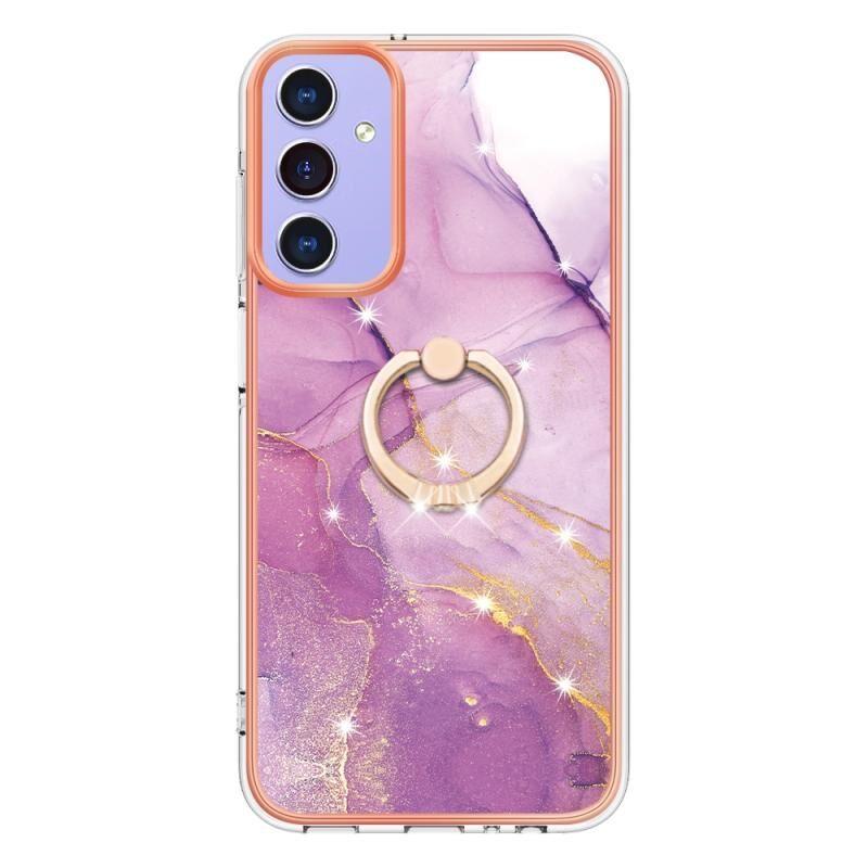 Θήκη κινητού τηλεφώνου Samsung Galaxy A15 5G με Ηλεκτρολυτική επικάλυψη, σχέδιο Μάρμαρου IMD, από TPU με Δακτύλιο Στήριξης (Χρυσό Ρόδι 005)
