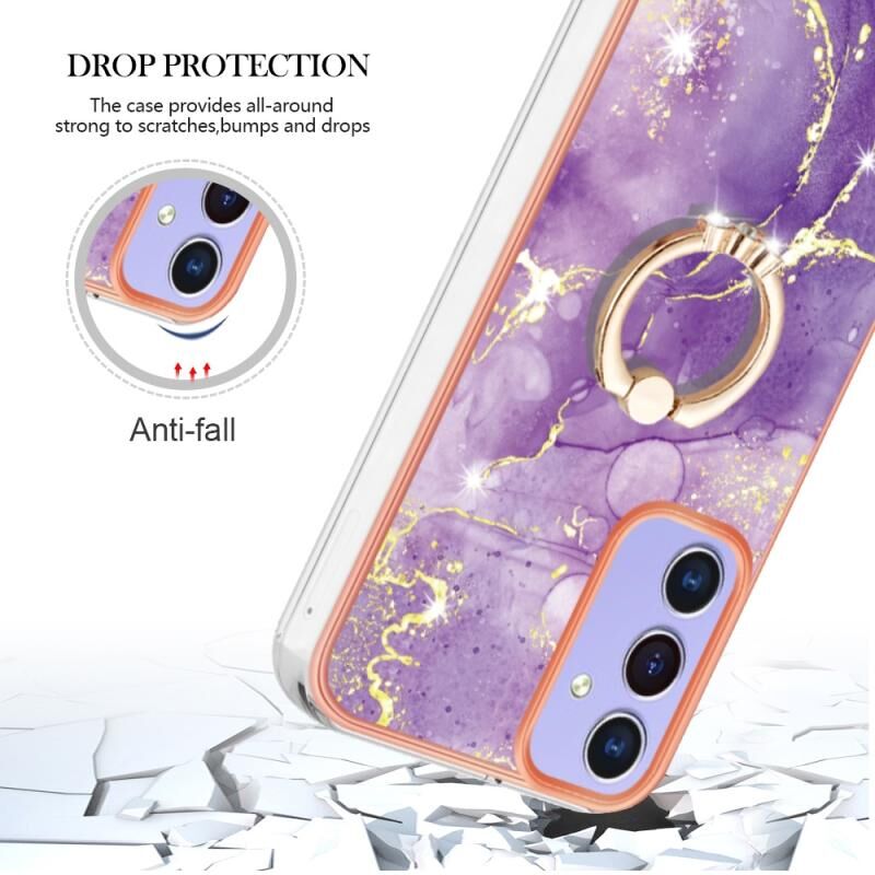 Θήκη κινητού τηλεφώνου Samsung Galaxy A15 5G με Ηλεκτρολυτική επικάλυψη, σχέδιο Μάρμαρου IMD, από TPU με Δακτύλιο Στήριξης (Χρυσό Ρόδι 005)