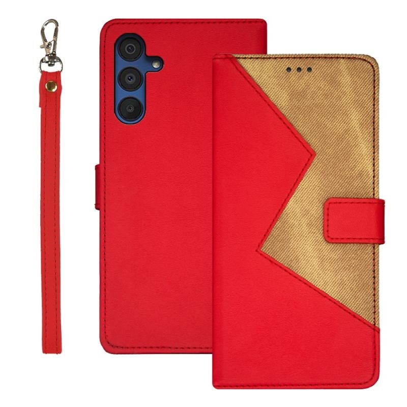 Θήκη τηλεφώνου δερμάτινη διχρωμίας για Samsung Galaxy A15 5G idewei (Κόκκινη) (idewei)