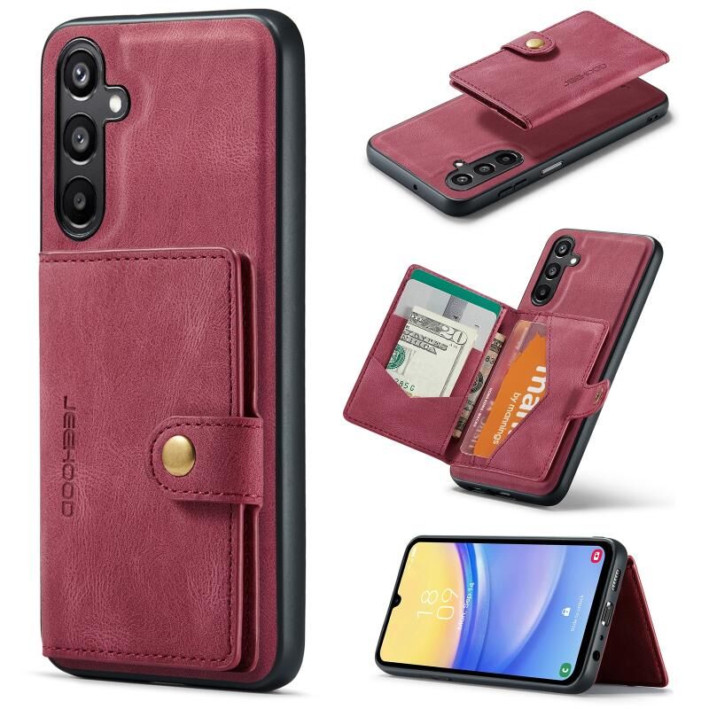 Για Samsung Galaxy A15 5G JEEHOOD J01 Ρετρό μαγνητική αποσπώμενη θήκη τηλεφώνου πορτοφόλι (κόκκινο) (JEEHOOD)