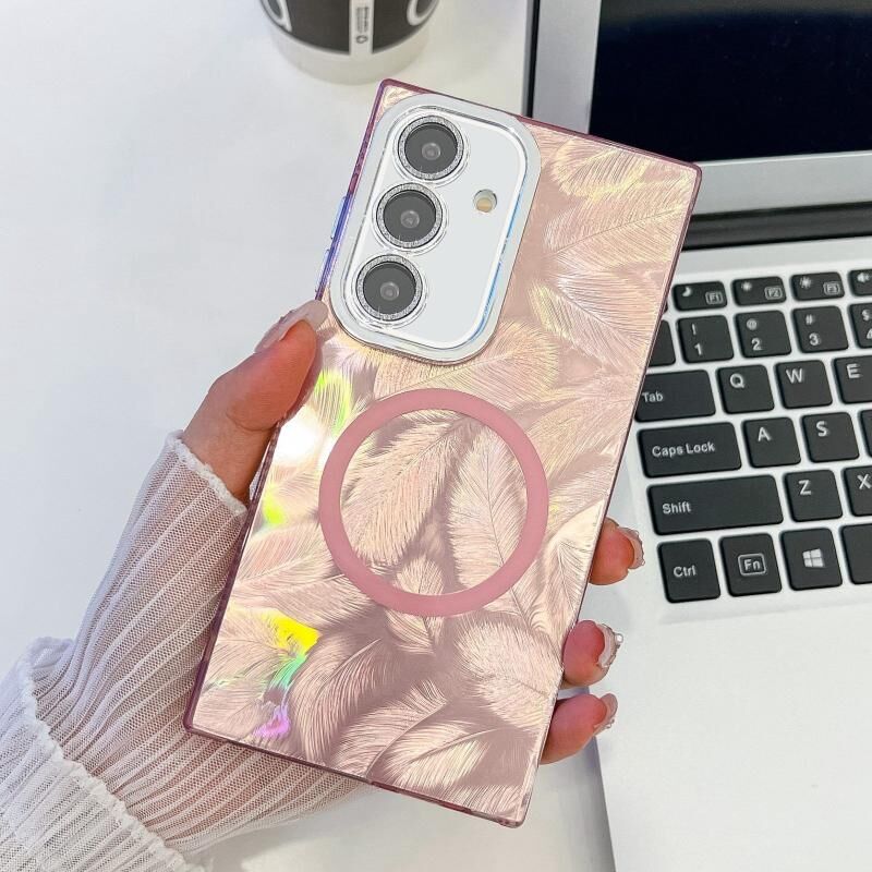 Θήκη κινητού τηλεφώνου Samsung Galaxy A15 5G από TPU με υφή επιμετάλλωσης και MagSafe, με προστατευτική μεμβράνη φακού με γκλίτερ (Λευκά Κύματα Νερού)
