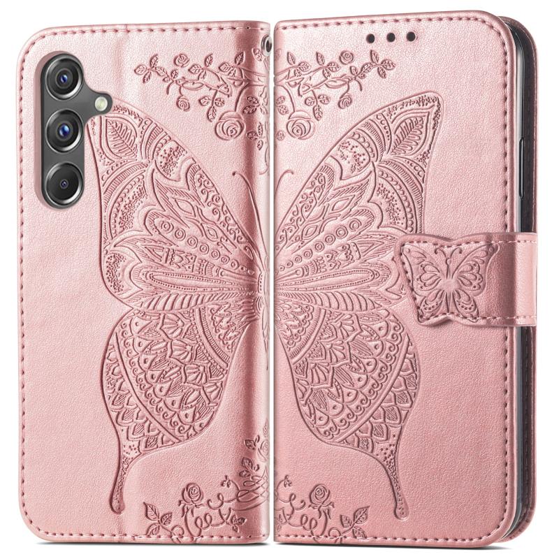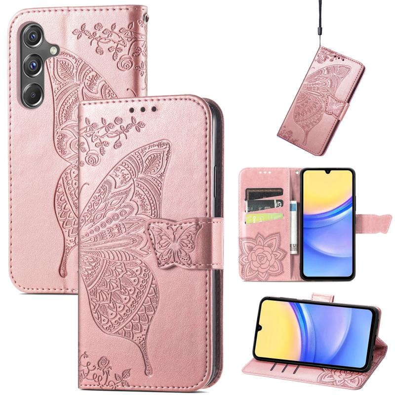For Samsung Galaxy A15 Butterfly Love Flower Embossed Leather Phone Case(Rose Gold)