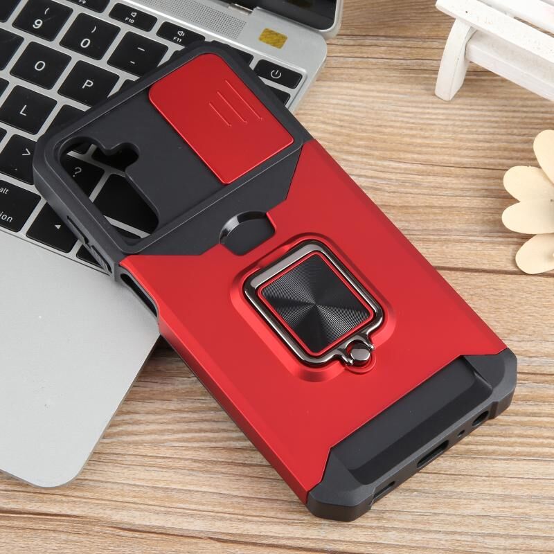 Για το Samsung Galaxy A15 Κάμερα Ασπίδα κάρτας ασπίδα Υποδοχή PC + TPU υπόθεση τηλεφώνου (κόκκινο)