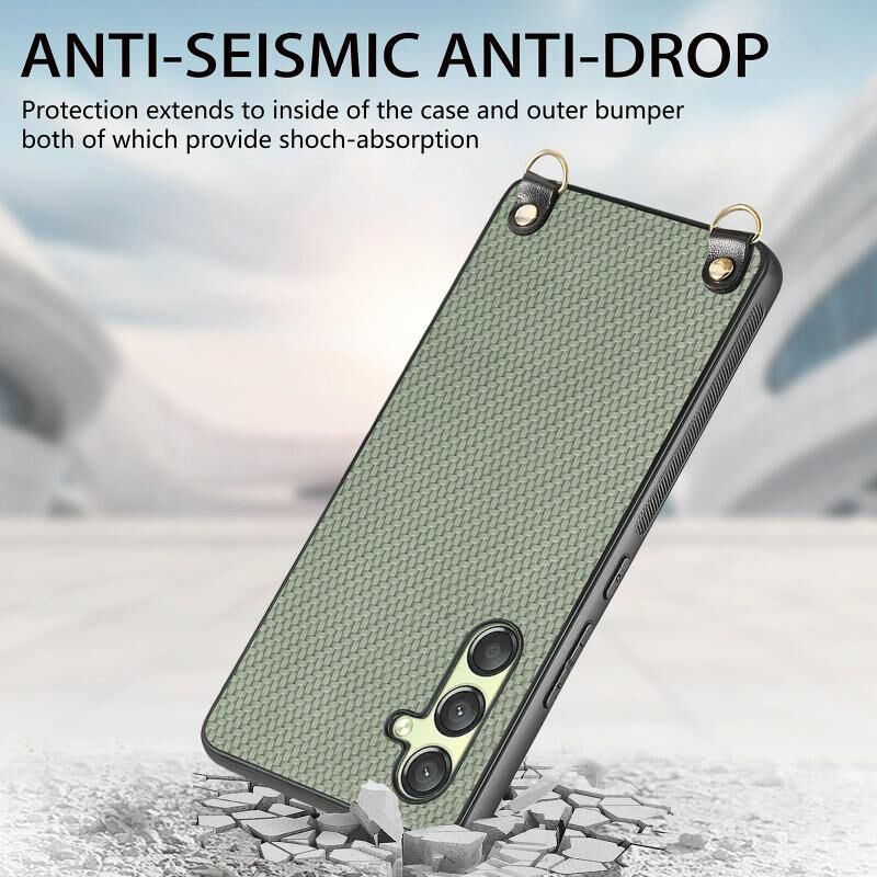 Θήκη κινητού τηλεφώνου Samsung Galaxy A15 με υφή ανθρακονημάτων και δερμάτινη πλάτη, με λουρί crossbody (Πράσινο)