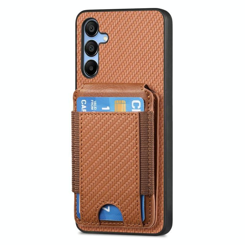 Για Samsung Galaxy A15 Carbon Fiber Κάθετη Flip Wallet Stand υπόθεση τηλεφώνου (καφέ)