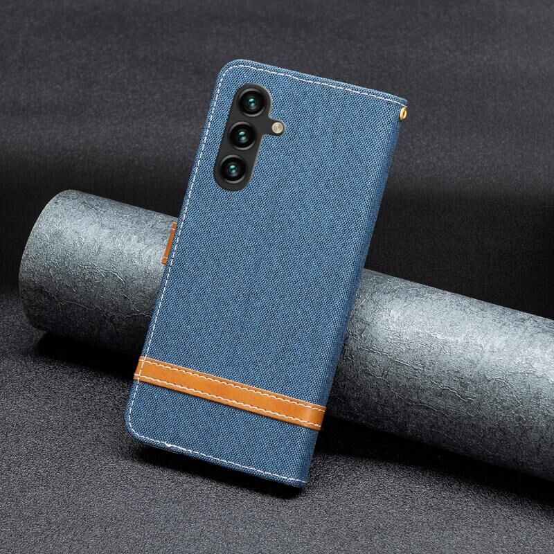 Για Samsung Galaxy A15 Color Block Denim Texture δερμάτινη θήκη τηλεφώνου (σκούρο μπλε)