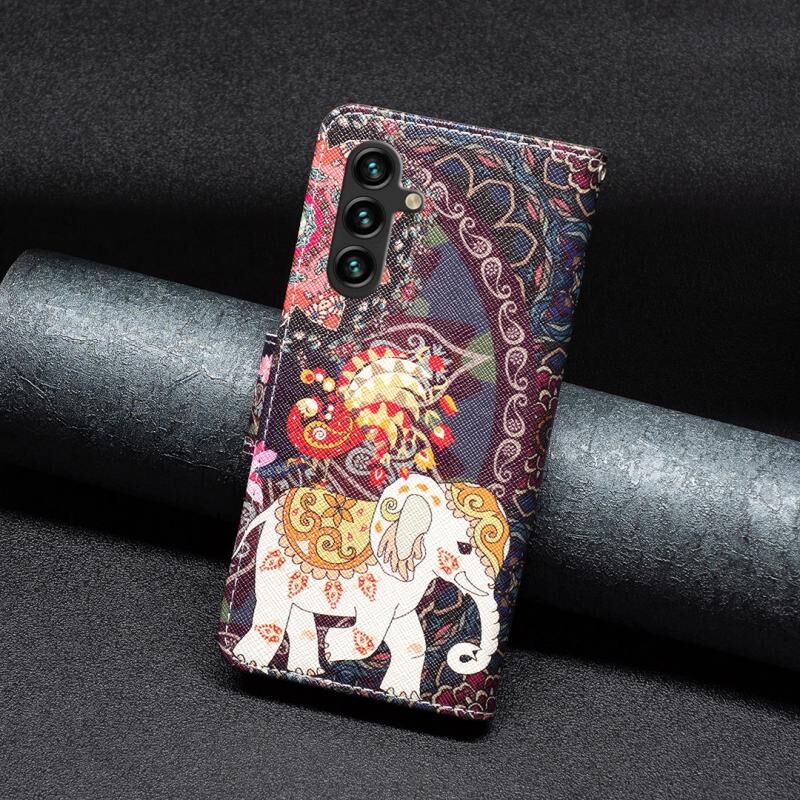 Θήκη τηλεφώνου Samsung Galaxy A15 από δέρμα με έγχρωμο σχέδιο (Λουλούδια Ελέφαντας)