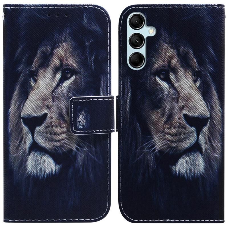 Θήκη τηλεφώνου Samsung Galaxy A15 με σχέδιο λιονταριού, δερμάτινη, αναδιπλούμενη, σε διάφορα χρώματα. (Κόκκινο)