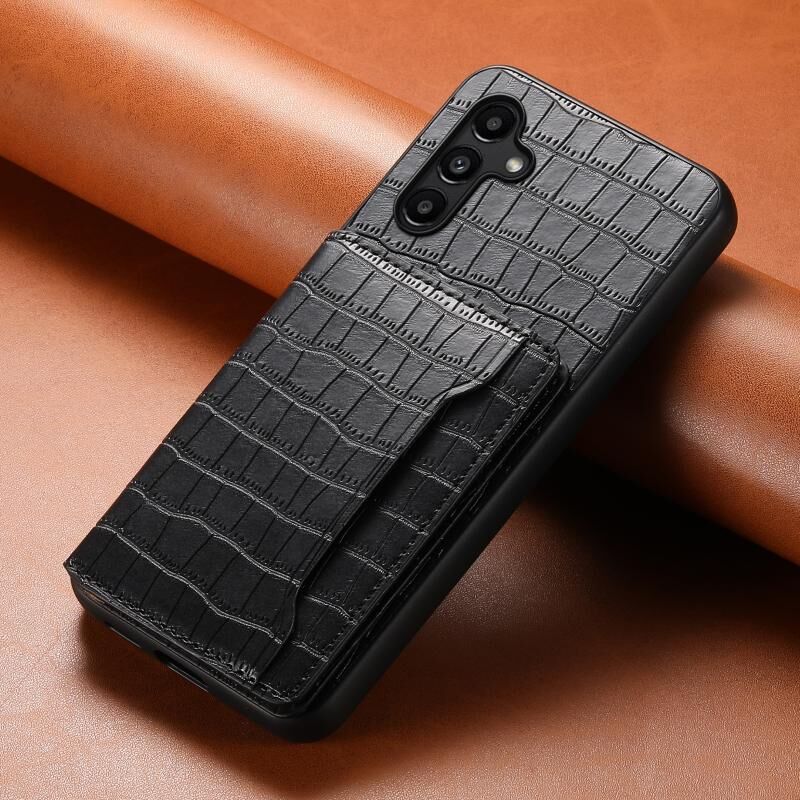 Θήκη κινητού τηλεφώνου Samsung Galaxy A15 με υφή κροκόδειλου και σχέδιο θήκης καρτών, πλήρης κάλυψη (Καφέ)