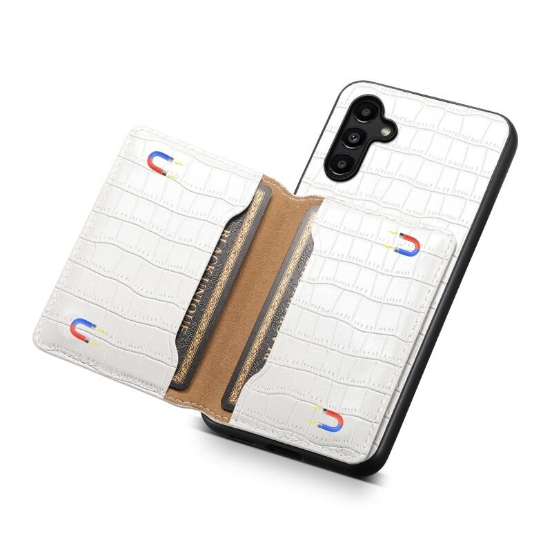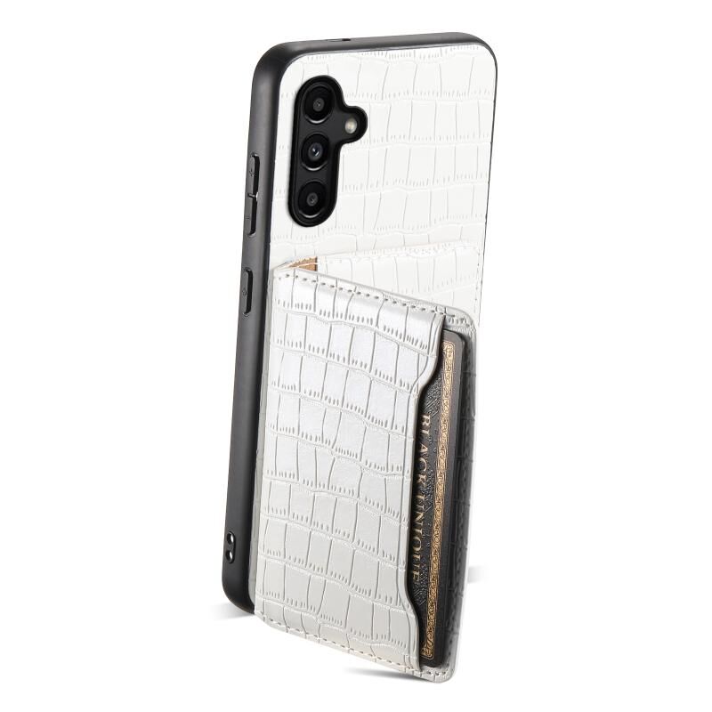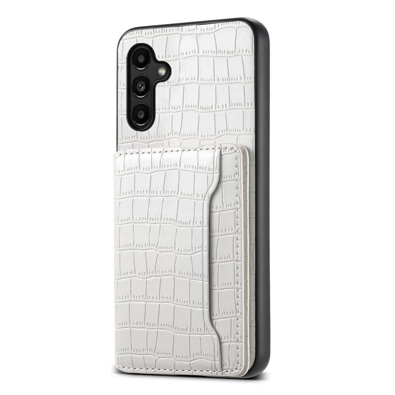 Θήκη κινητού τηλεφώνου Samsung Galaxy A15 με υφή κροκόδειλου και σχέδιο θήκης καρτών, πλήρης κάλυψη (Λευκό)