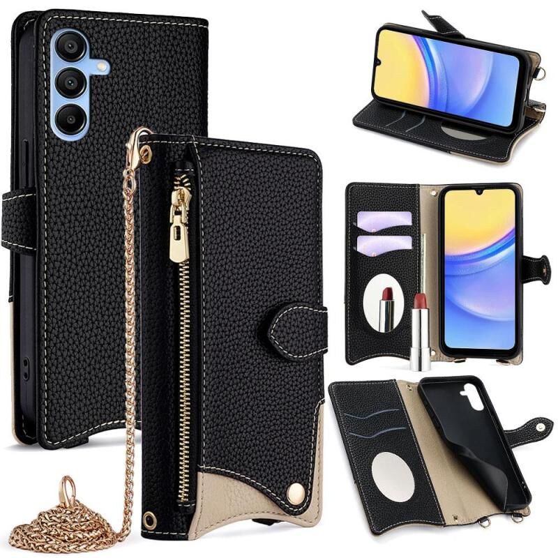 Για Samsung Galaxy A15 Crossbody αλυσίδα Fishtail Litchi δερμάτινη θήκη τηλεφώνου (Μαύρο)
