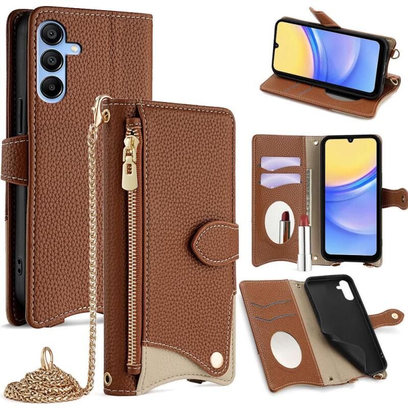 Για Samsung Galaxy A15 Crossbody αλυσίδα Fishtail Litchi δερμάτινη θήκη τηλεφώνου (καφέ)