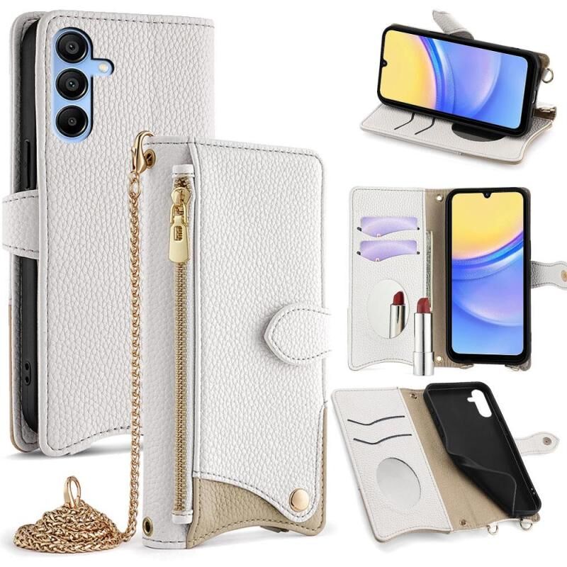 Για Samsung Galaxy A15 Crossbody αλυσίδα Fishtail Litchi δερμάτινη θήκη τηλεφώνου (λευκό)
