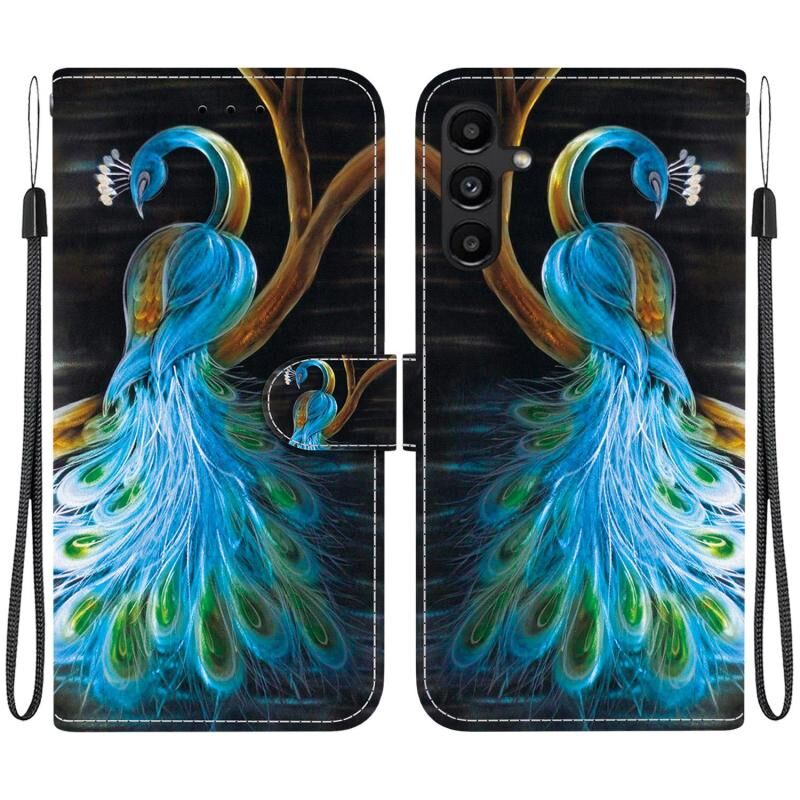 Θήκη τηλεφώνου Samsung Galaxy A15 με κρυστάλλινη υφή, πολύχρωμη σχεδίαση από δέρμα (Παγόνα)